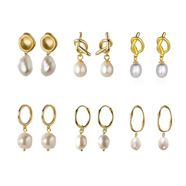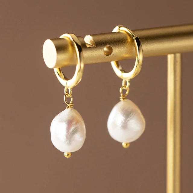 Wholesale 925 Sterling Silver Freshwater Pearl Earrings 2021 Women Hoops Baroque Pearl Dangle Earrings