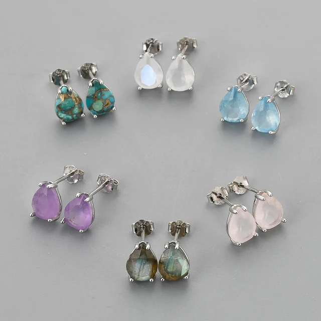 Dainty Gold Plated 925 Sterling Silver Natural Aquamarine Stud Earring Women 2024