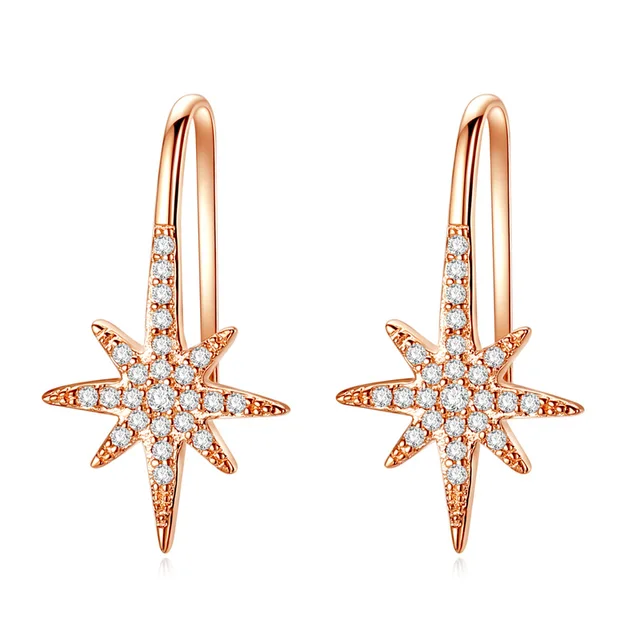 Rose Gold 925 Sterling Silver Star Diamond Custom Hoop Earrings With logo 2024