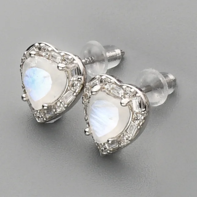 SS208 Sterling Silver Healing Crystal Studs Earring Jewelry Vermeil Claw Set Raw Moonstone Silver Earring