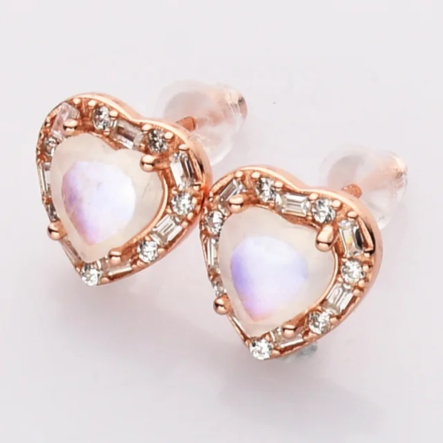 MS215 Dainty Rose Gold Vermeil Diamond Pave Fine Jewelry Healing Crystal Moonstone Earrings