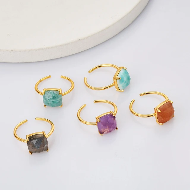 Gold Plated Natural Healing Stones Crystal Gemstone Women Jewelry 925 Sterling Silver Rings for Women